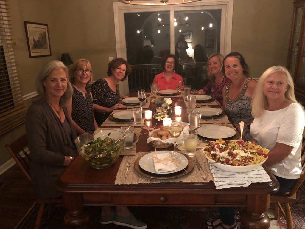 We have 10 members (not all pictured here), so we each get the chance to host the group once a year. (Someone gets March-April and someone gets June-July to work around vacations and family events.) The host picks the book, sets the date and makes dinner. That frees everyone else up to read and enjoy for most of the year!